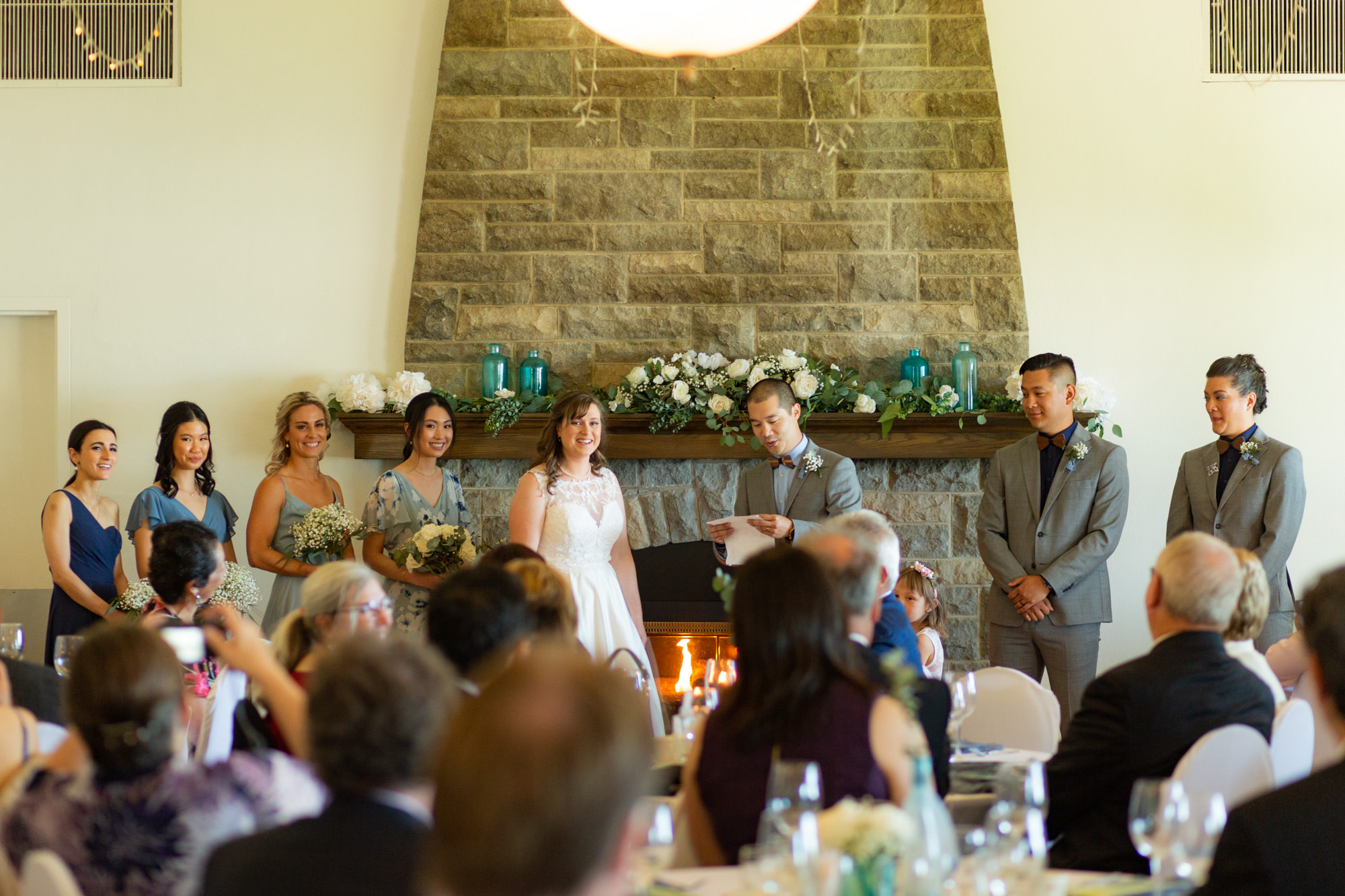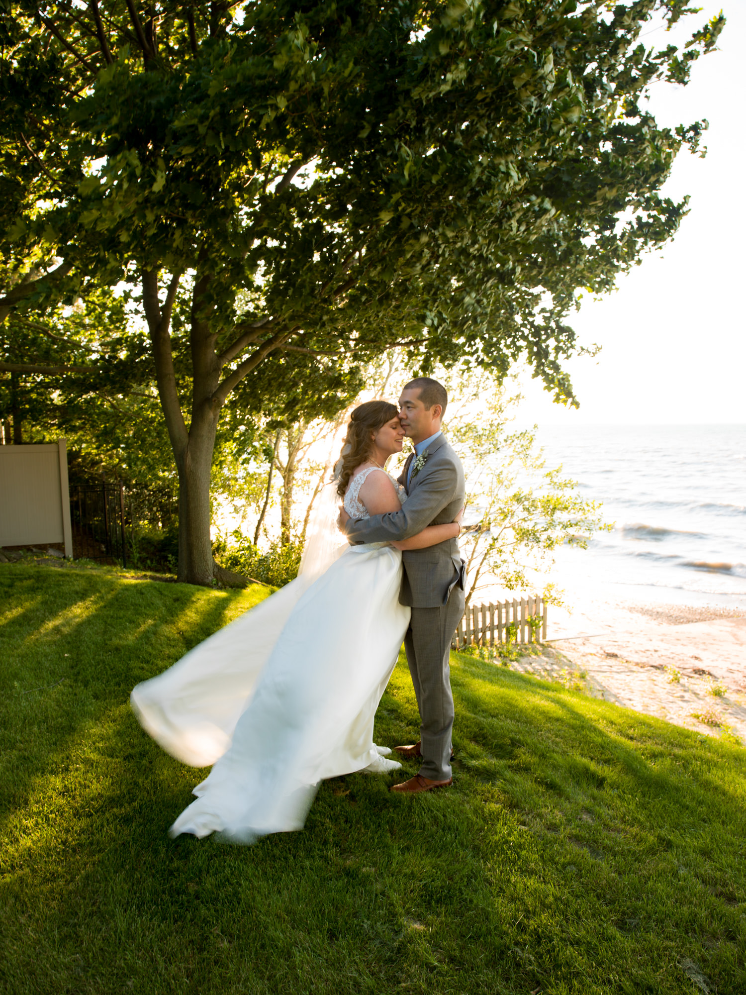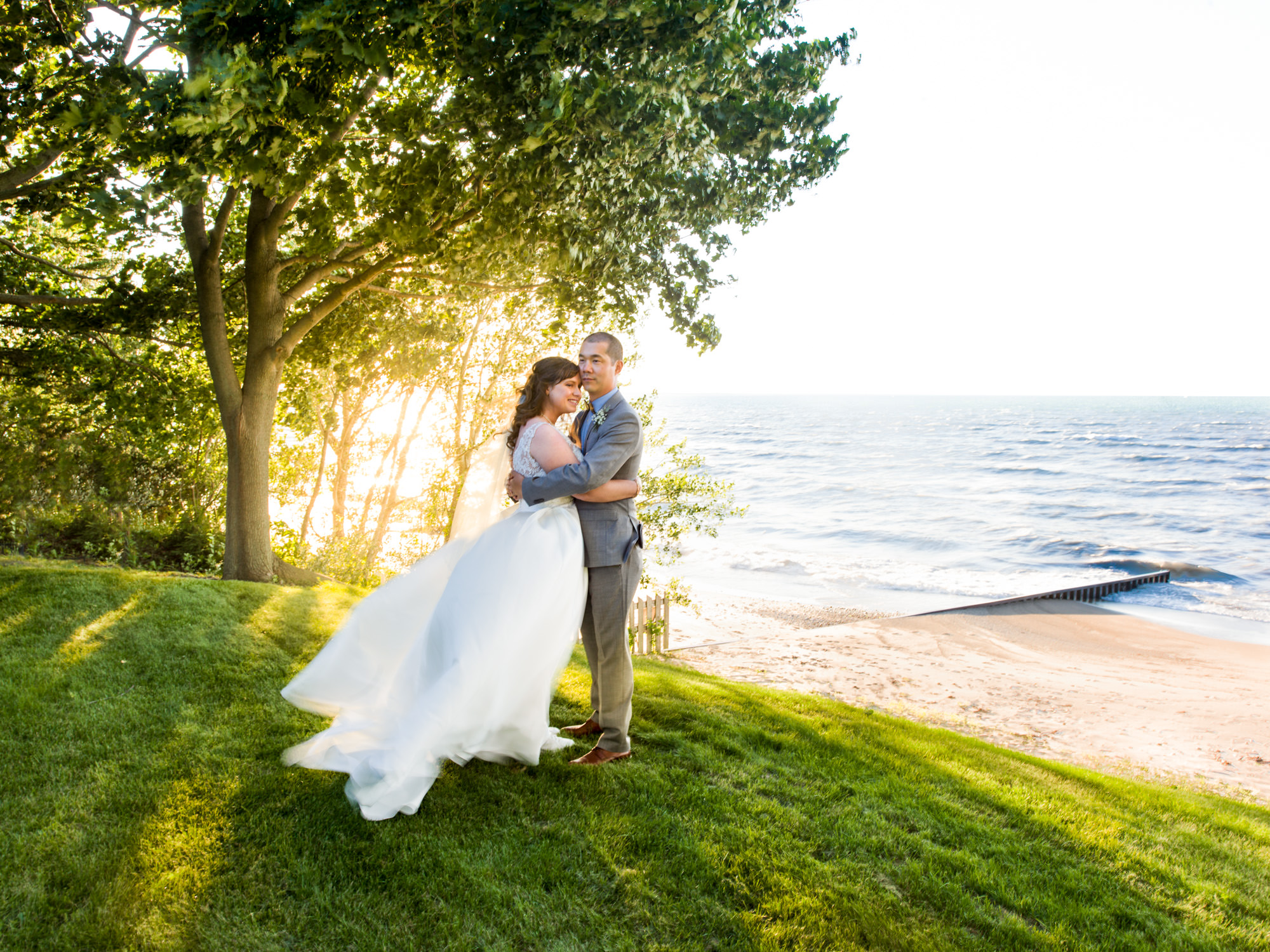 Heather and Nigel Ribeiro Stood in front of Lake Huron on the bluffs of the Sarnia Riding Clubb to say their wedding vows before using the lush grounds and rustic and cozy space for their wedding reception.