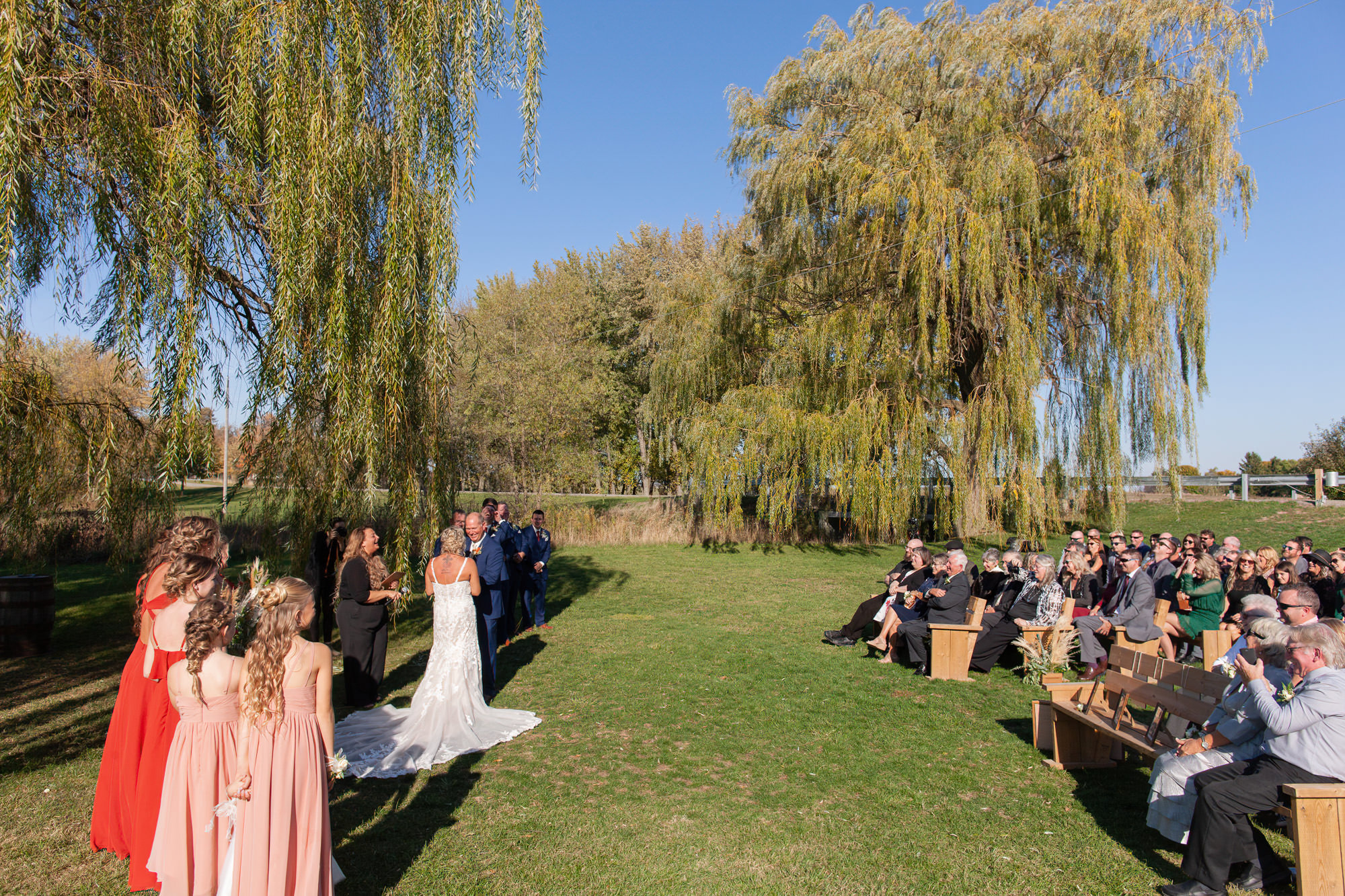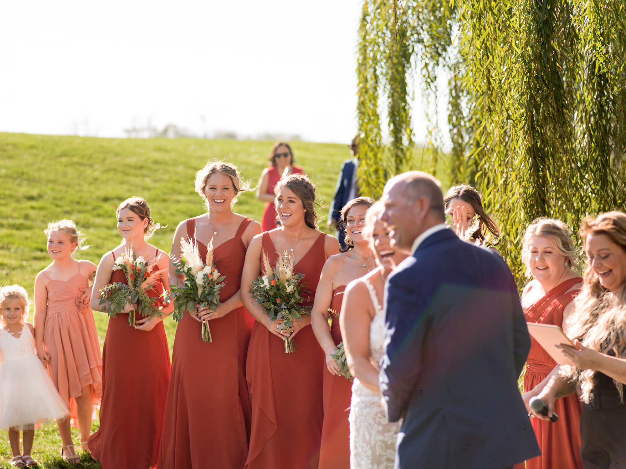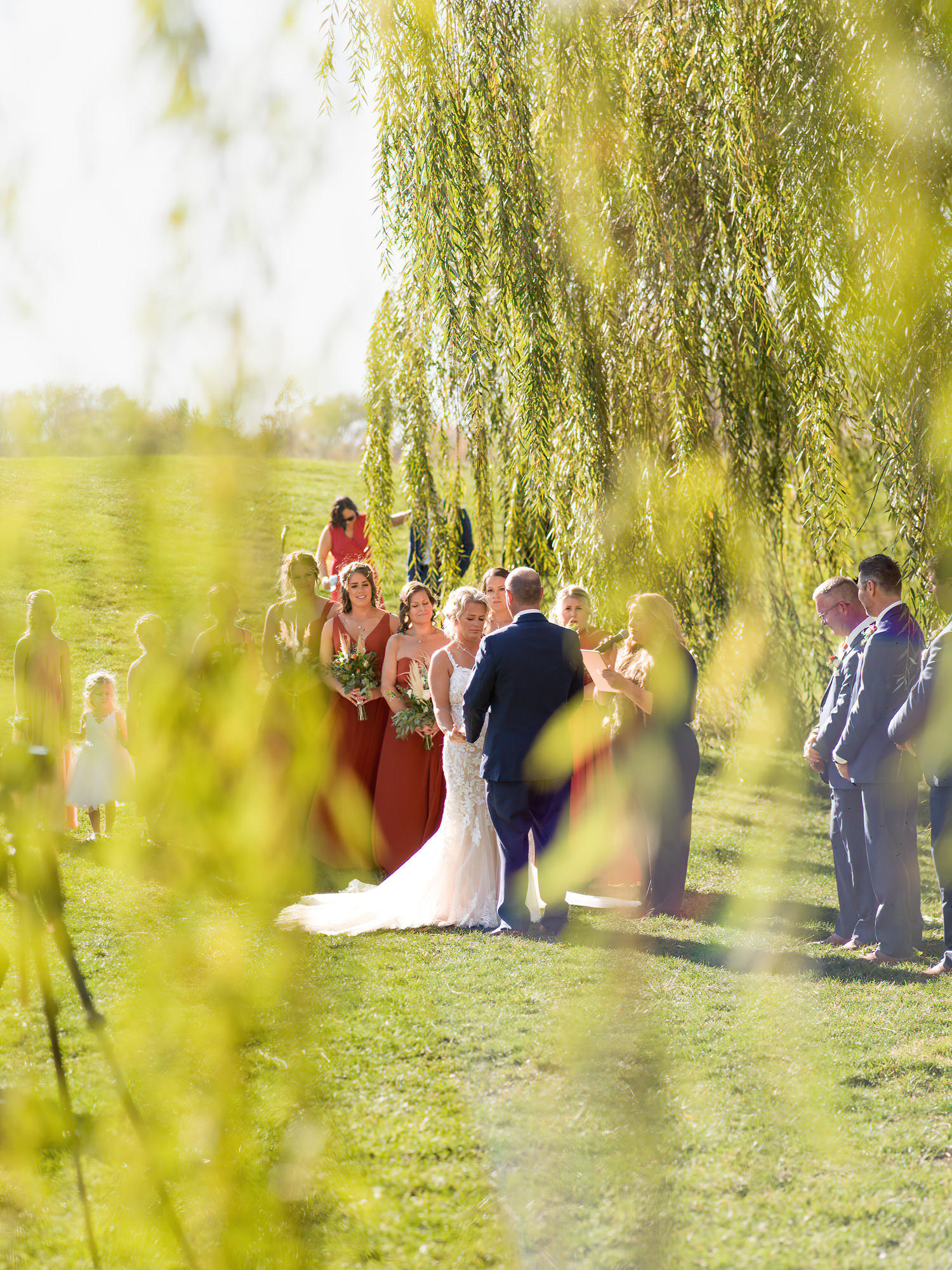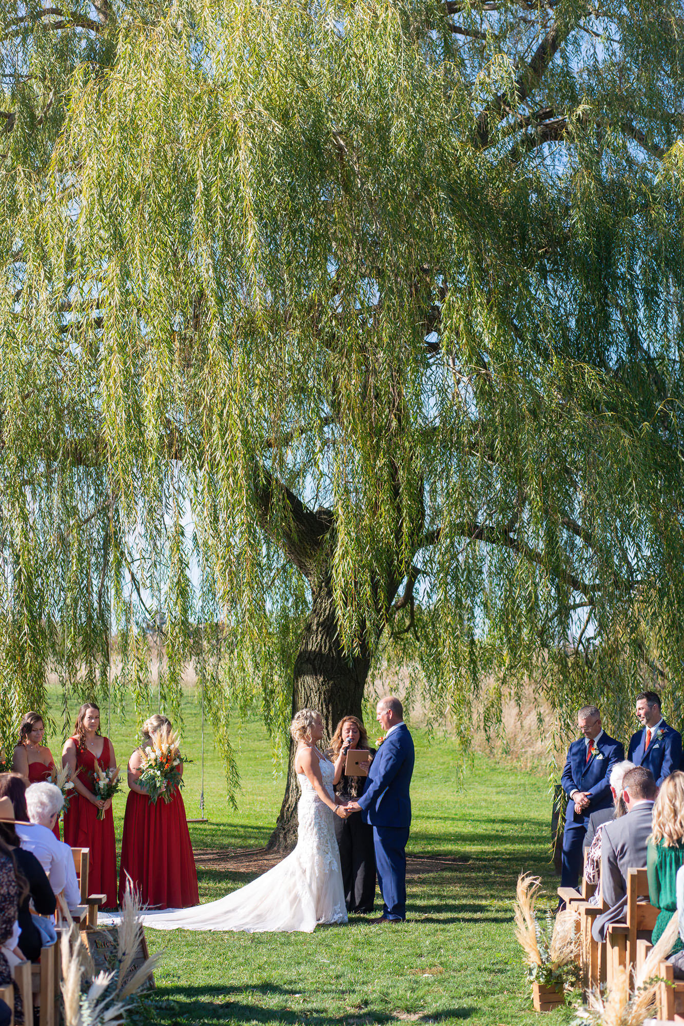 The Britney’s hosted their wedding outside under the willow tree at Present Hill Acres before going into the rustic barn for their evening reception.