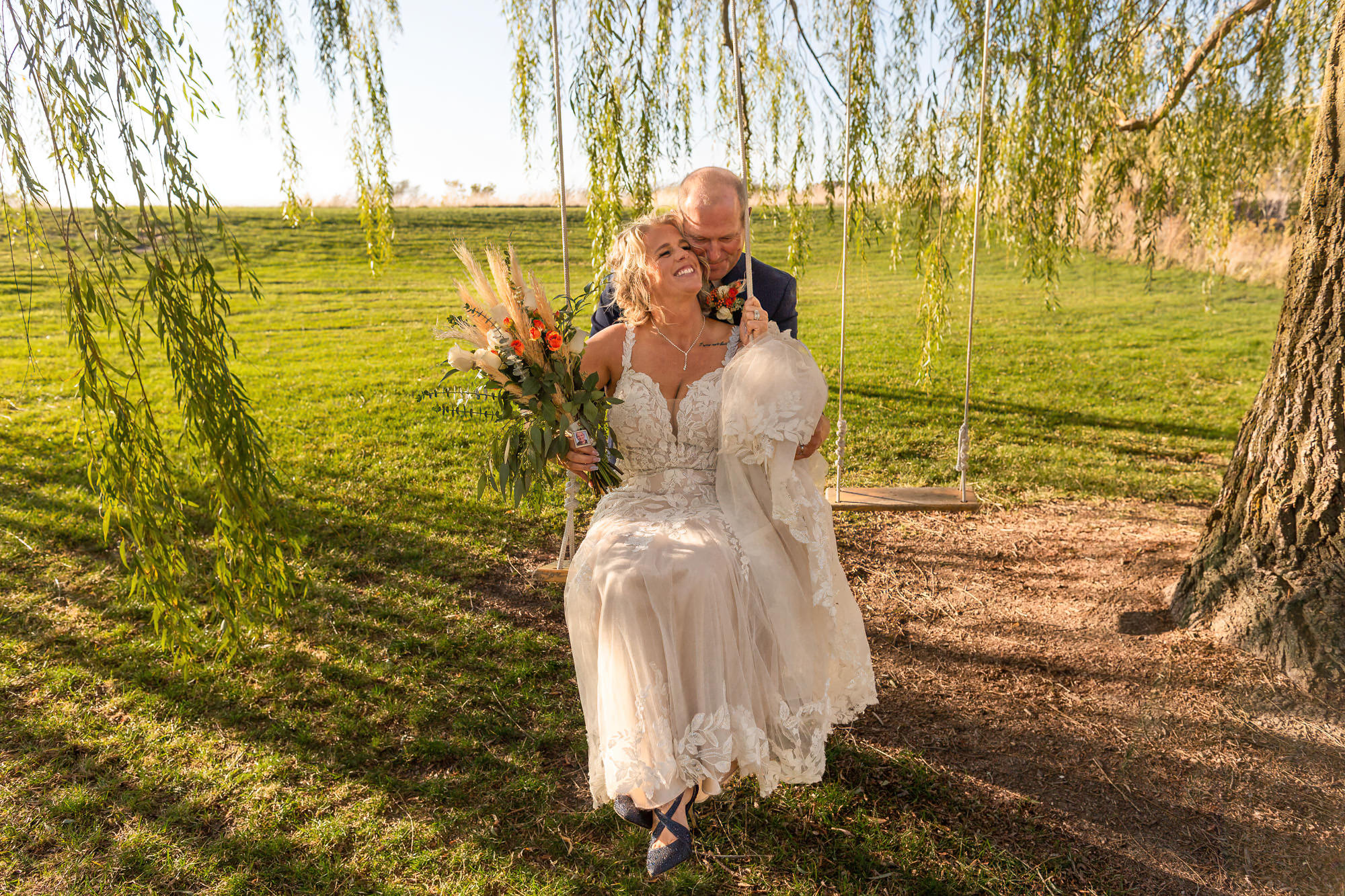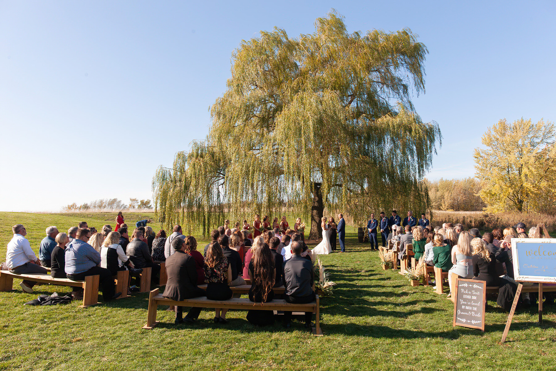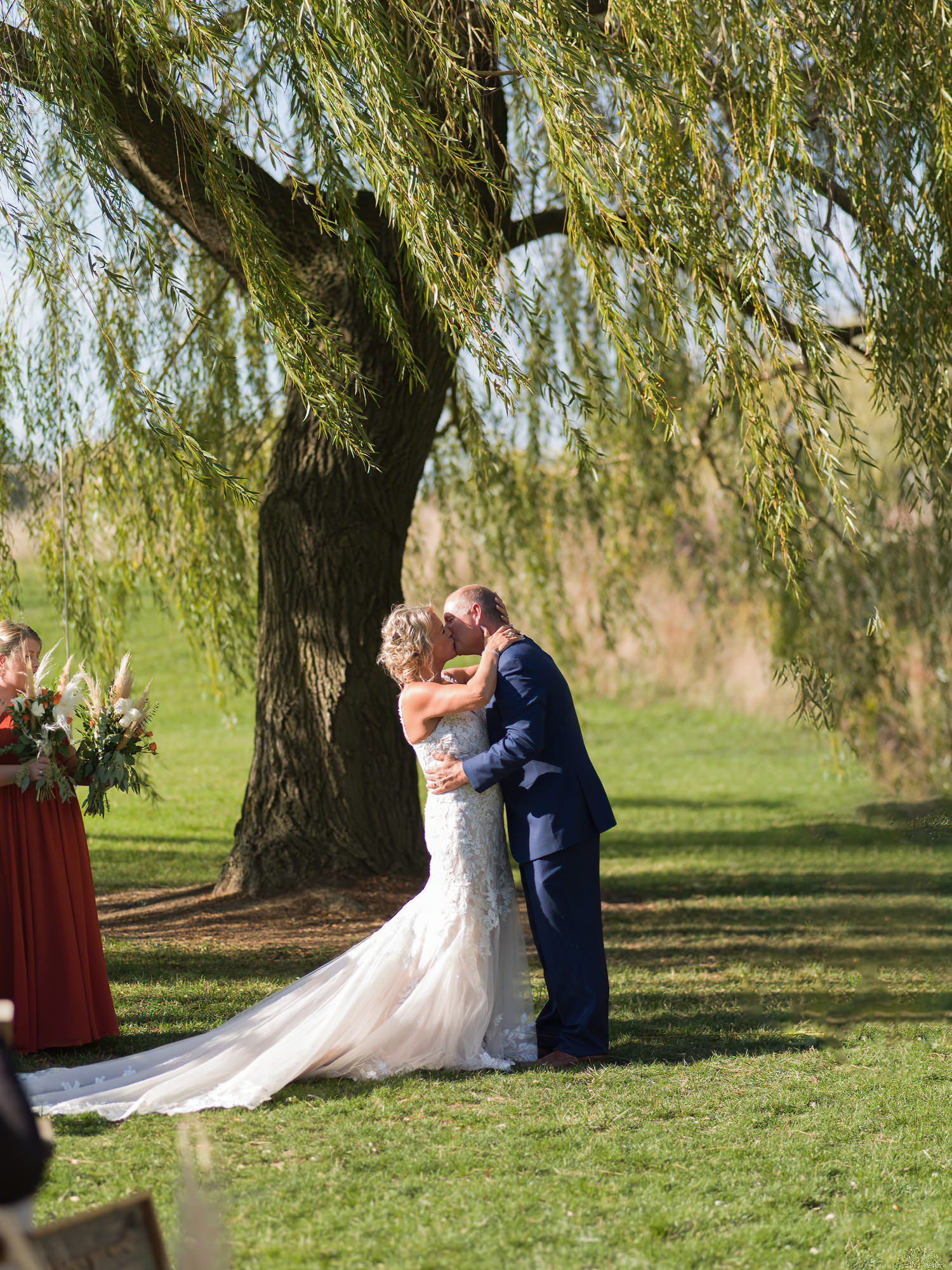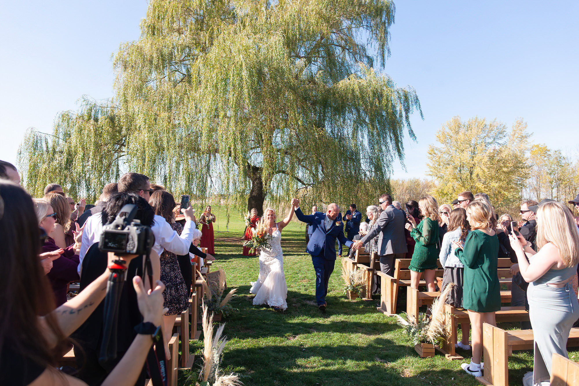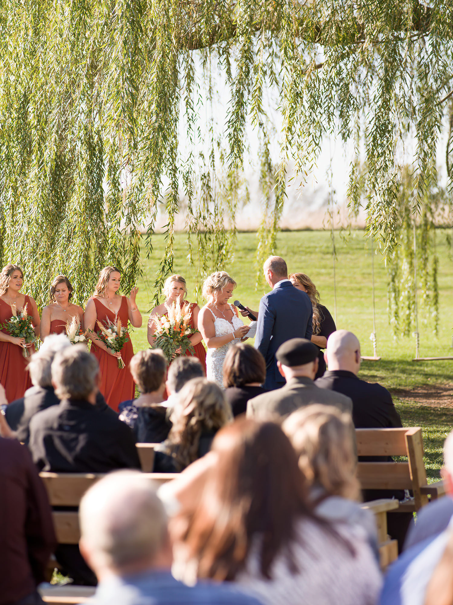 The Britney’s hosted their wedding outside under the willow tree at Present Hill Acres before going into the rustic barn for their evening reception.