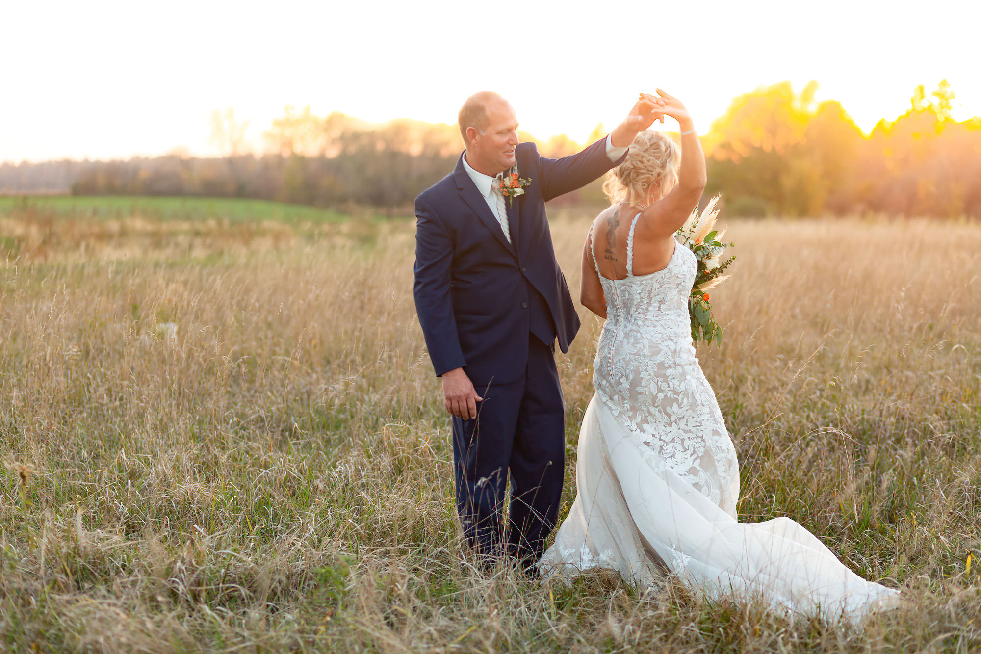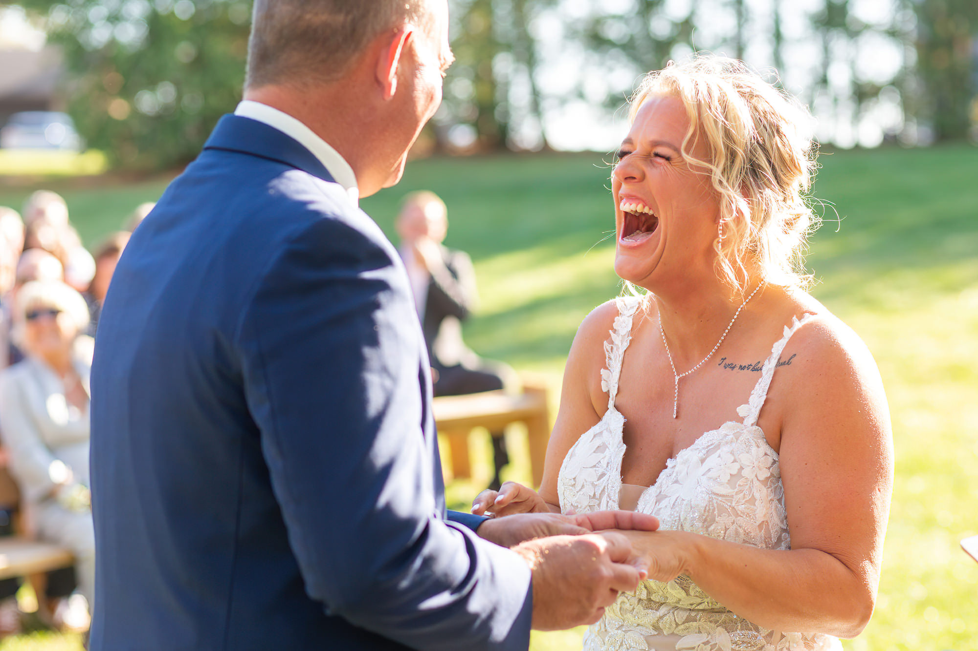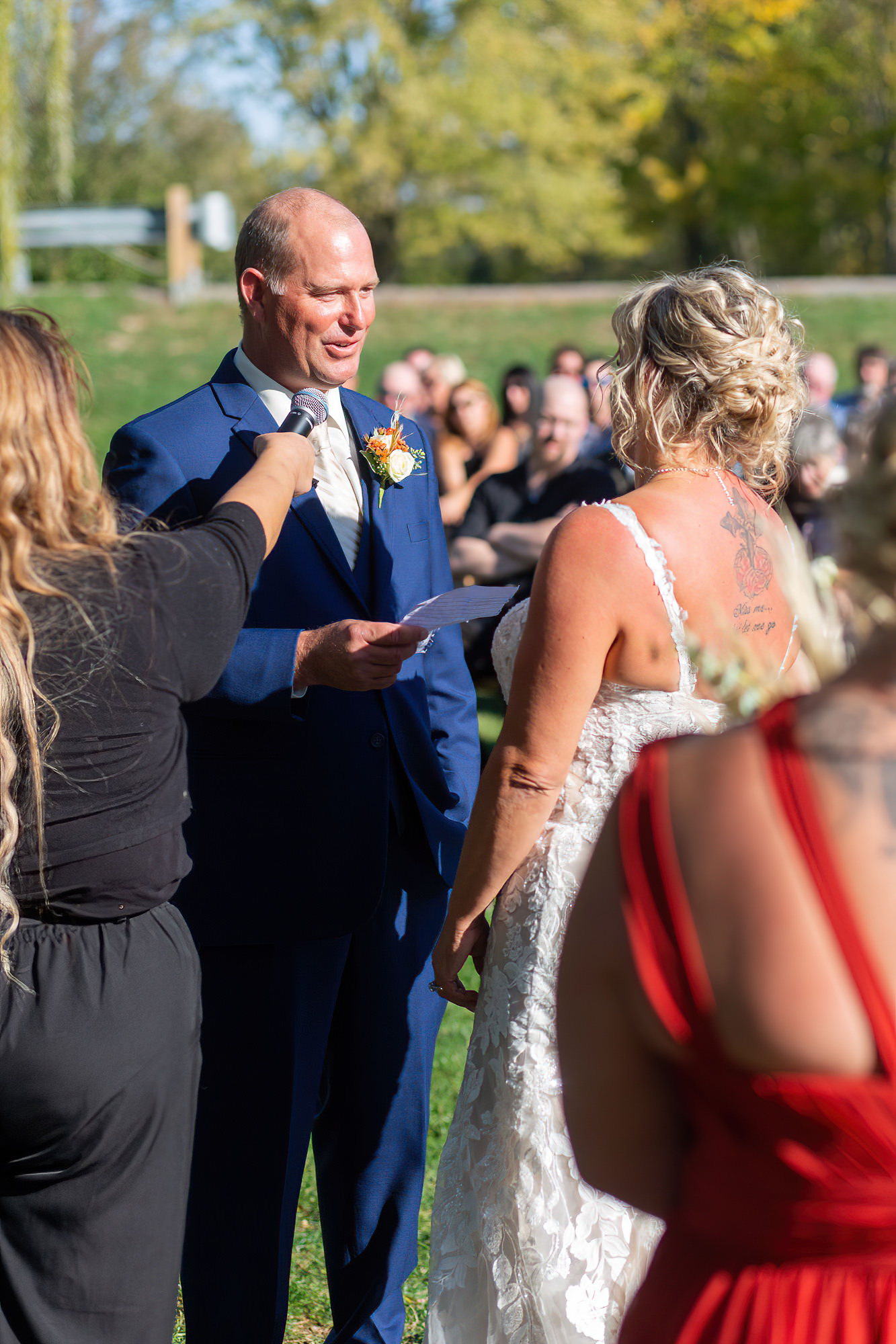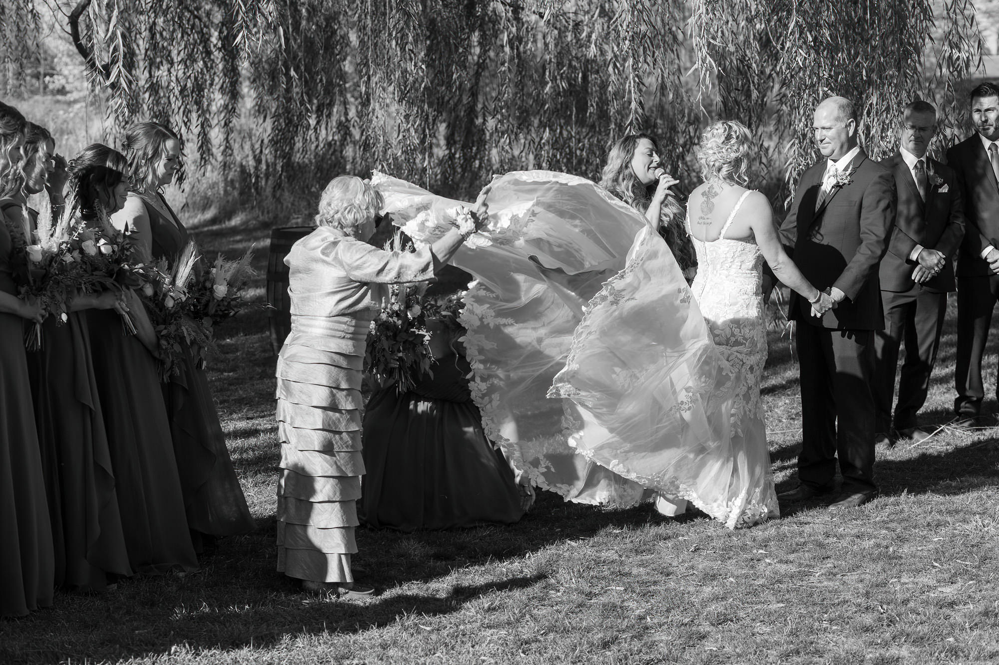 The Britney’s hosted their wedding outside under the willow tree at Present Hill Acres before going into the rustic barn for their evening reception.